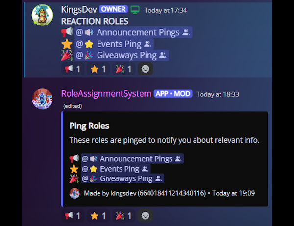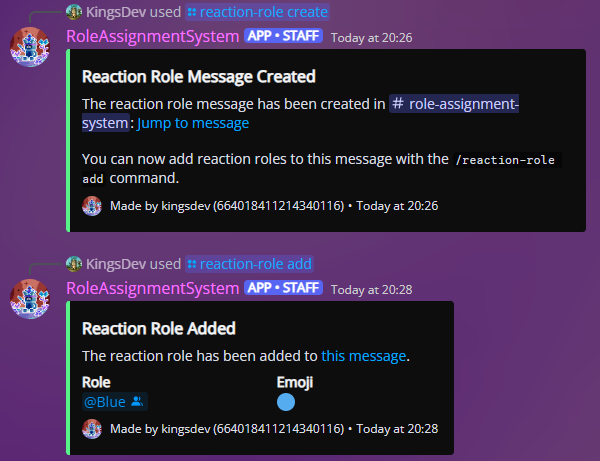 Role Assignment System (RAS) manages roles for a community server. The bot allows users to assign or unassign themselves specific roles by reacting with corresponding emojis to a message. The bot can also automatically display the list of available roles and the emojis associated with them for each panel of roles. Alternatively, users can have reaction roles added to a message sent by themself, another user, or another bot. Users are able to view their current roles and all available roles at any time through the /roles command. Server staff can setup and manage reaction roles and panels through the /reaction-role command.