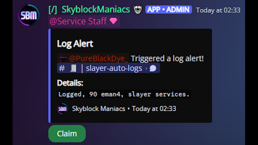 Skyblock Maniacs is the most popular discord server for connecting carriers with clients across a variety of services in Hypixel Skyblock. I have been a developer at SBM since late 2023, contributing to and reviewing pull requests for the Discord bot that oversees the server.