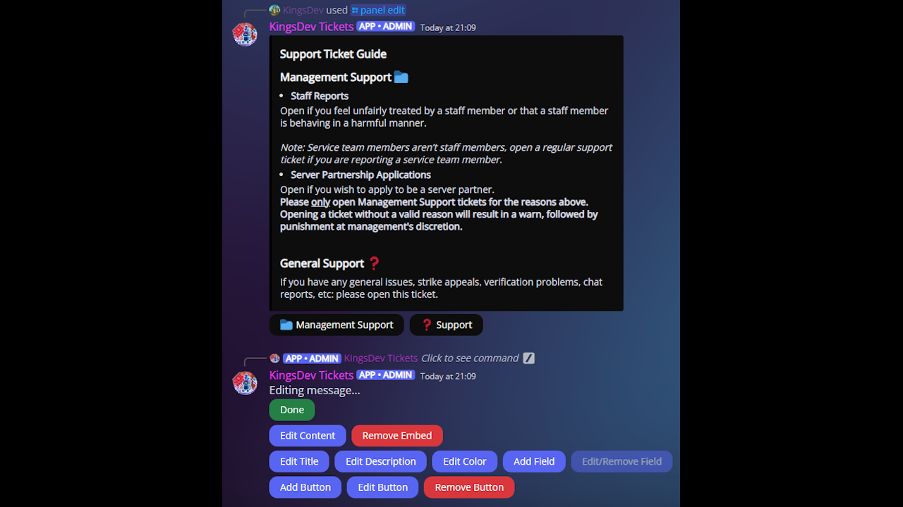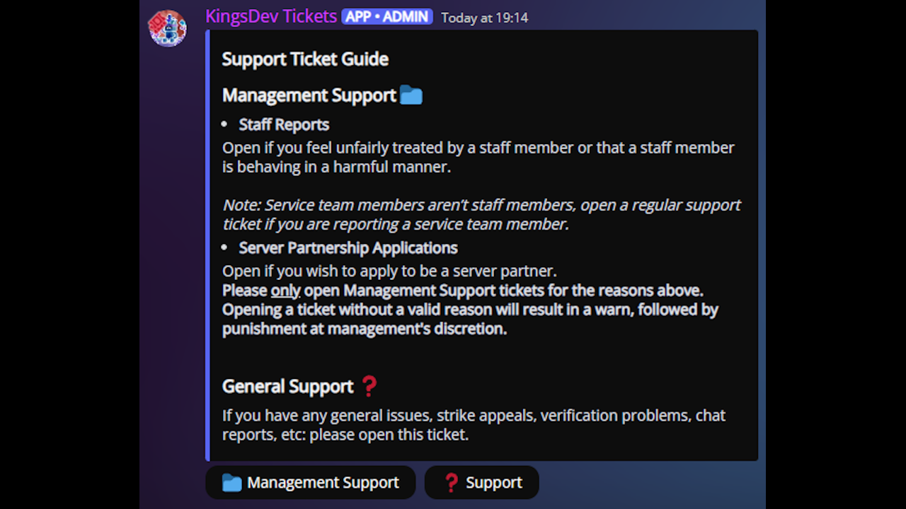 • Bug fixes / Quality of Life - I fixed a wide range of bugs, such as API errors resulting in some commands not working, ticket names glitching and being messy, some commands not loading on startup, etc.