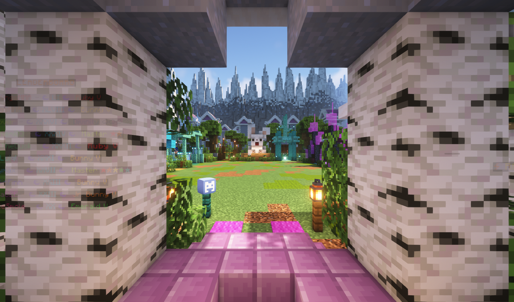 BunnyFarm was a minigame server in which the player would run around the main farm in the middle of the map using a variety of tools to feed bunnies and level up. The server featured custom quests, multiple feeding areas, minibosses, a fishing system, achievements, and more. I first joined the team as a developer in October 2021, stepping up to be co-owner and to take on more developmental responsibilities in April 2022. In these roles, I contributed significantly to the server's rerelease and subsequent updates until its close in late February 2023.