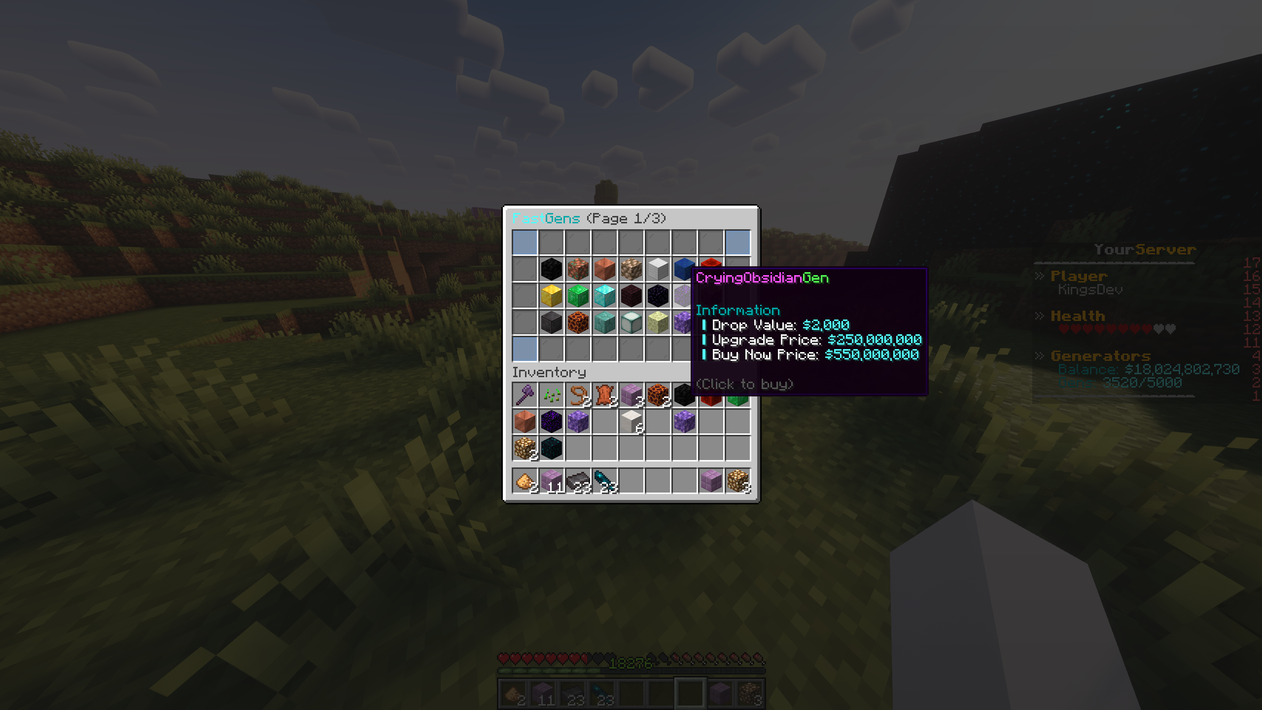 The FastGens Minecraft server averages ~100 players and has over 6,000 unique players. I rewrote the server's feature plugin, which allows players to purchase, upgrade, and place item generators from the ground up. The server was facing performance and data integrity issues with their old implementation, and as such, commissioned me to make a highly performant, reliable solution. Stress tests of my plugin found that over 300,000 item generators could be placed with no data integrity issues and little to no performance issues.
