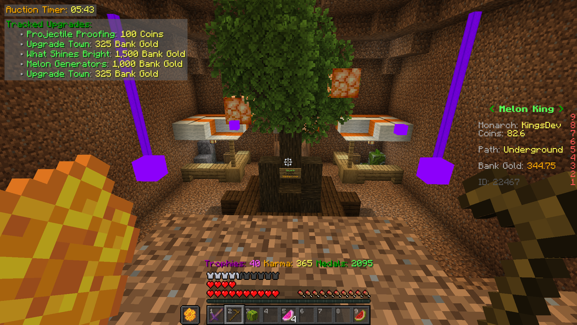 • Code hider - When playing Melon King, many players face performance issues as a result of the hundreds of chests, signs, and other unrelated blocks in the code area. This area is not related to the game, and as such, the code hider feature helps improve performance for some players by hiding all non-gameplay-related blocks and tile entities.